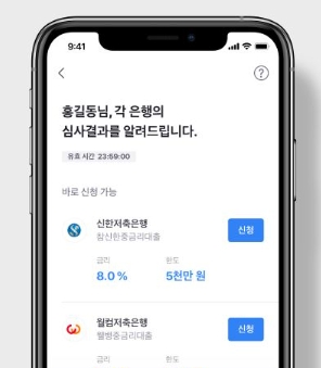 - 본인 명의 금융정보를 연동할 경우 신용도 상승 반영